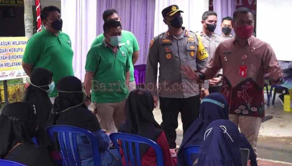 Pelaihari,BARITO – Lantaran capaian vaksinasi di Kabupaten Tanah Laut belum mencapai target 50 persen, maka Pemerintah Kabupaten Tanah Laut terus menggenjot sebuan vaksin. Dalam serbuan vaksin kali ini turut diback up jajaran Polres Tanah Laut hingga sampai ke Polsek-Polsek.
