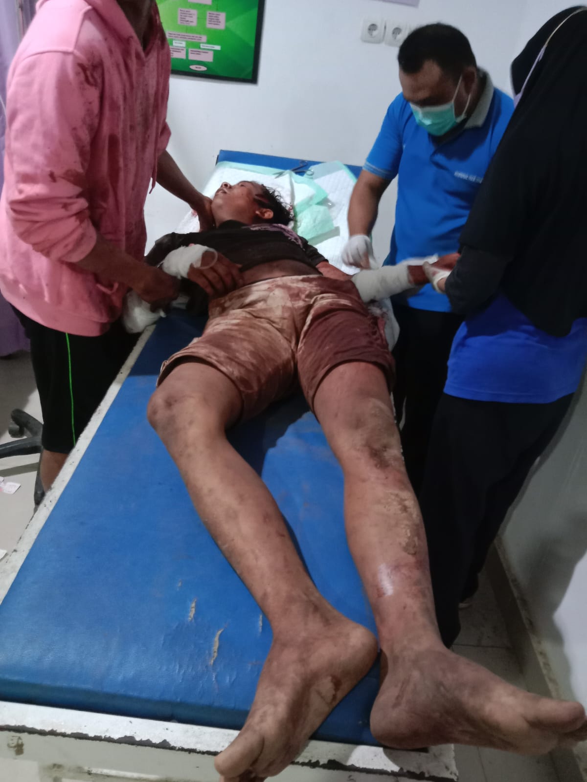 Melihat korbannya tersungkur bersimbah darah, pelaku langsung melarikan diri, sementara korban yang tidak berdaya lantaran darah terus bercucuran dilarikan ke Puskesmas Teluk kepayang untuk mendapatkan penanganan pertama.