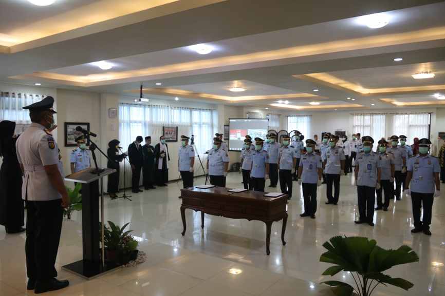Banjarmasin, BARITO – Kepala Kantor Wilayah (Kalanwil) Kementerian Hukum dan HAM (Kumham) Kalimantan Selatan (Kalsel), Tejo Harwanto melantik sebanyak 20 pejabat administrasi, Rabu, (23/12/2020. Bertempat di aula setempat pelantikan dan pengambilan sumpah jabatan terhadap para Pejabat Administrasi dan Pejabat Fungsional Tertentu.