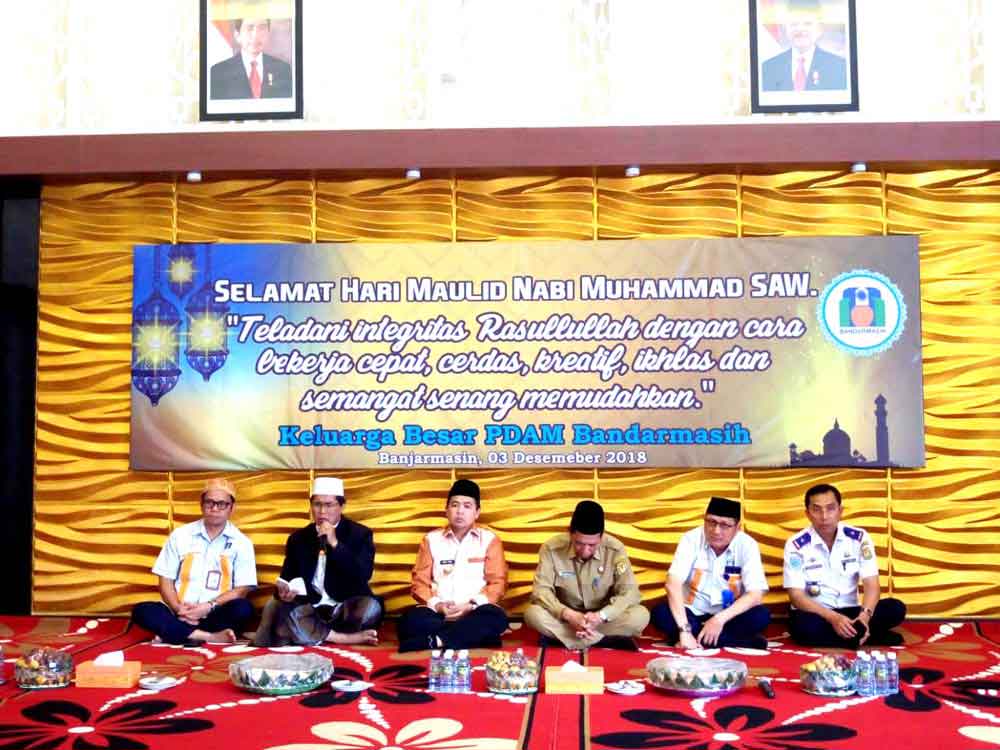 Banjarmasin, BARITO – Teladani Integritas Rasulullah, seluruh karyawan PDAM Bandarmasih laksanakan Maulidan Nabi Muhammad SAW di Aula PDAM Bandarmasih, Senin (3/12).