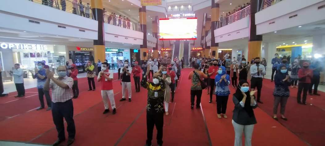 Tepuk tangan hampir satu menit ini dilakukan oleh seluruh tenant yang ada di mall terbesar di Kalsel ini. Pengunjung yang melintas juga diminta untuk menyumbangkan tepukannya.