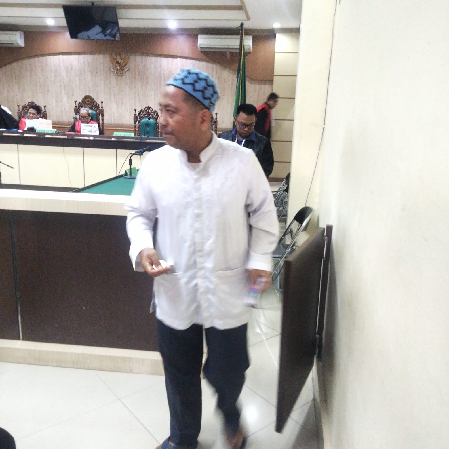 Terdakwa perkara Dana BOS Reguler di kabupaten Balangan, Mulyadi ketika akan meninggalkan ruang sidang.