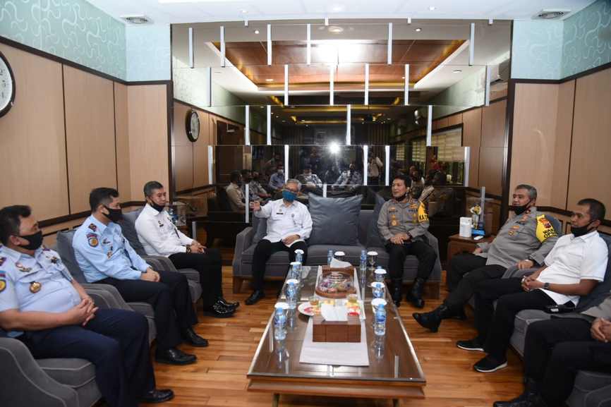 Banjarmasin, BARITO – Kapolda Kalsel Irjen Pol Dr Nico Afinta SH MH menerima kunjungan Kepala Kantor Wilayah (Kakanwil) Kemenkum dan HAM Kalsel Agus Toyib dan jajaran Rabu (24/6/2020).