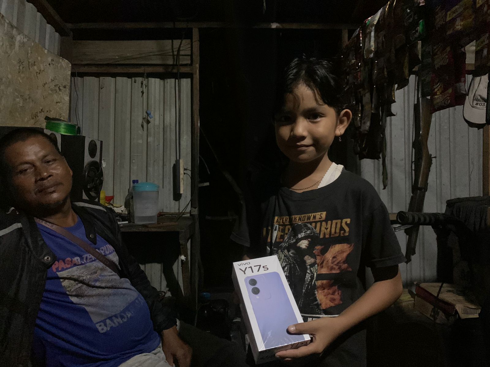 Marabahan, BARITOPOST.CO.ID – WAJAH Nurhayati pelajar sekolah dasar (SD) , anak penjual bensin eceran di Handil Bakti (Kabupaten Batola) yang ponselnya dirampas pengendara motoopr Selasa (31/10/2023) siang pukul 15.00 Wita lalu kini tersenyum bahagia