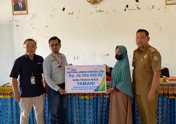 Jaminan kematian ini diserahkan oleh Kepala Bidang Kepesertaan Kantor BPJS Ketenagakerjaan Kantor Cabang Batulicin, Ramadhani Rakhmad dan Human Capital and Industrial Relation PT Pama Indo Mining Iskandar, M Saleh.