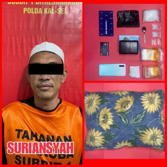 Direktur Ditresnarkoba Polda Kalsel Kombes Pol Tri Wahyudi melalui Kasubdit 1 AKBP Meilky Barata dikonfirmasi Barito Post , Sabtu (31/7/ 2021/ membenarkan penangkapan tersangka . Menurut AKBP Meilky Barata , dari hasil penggeledahan anggota nya berhasil disita barang bukti 4 (empat) paket sabu dengan berat kotor 112,37 gram (bersih 109,79 gram) yang disembunyikan tersangka di dalam bantal di kamarnya .”Penangkapan tersangka berdasarkan informasi masyarakat yang kemudian kami dalami ” jelas alumnus Akpol 2003 ini. Tersangka yang tak berkutik menyusul barang bukti sabu yang ditemukan kemudian dibawa ke Kantor Ditresnarkoba Polda Kalsel untuk dilakukan proses lebih lanjut . Turut disita barang bukti lainnya selain sabu