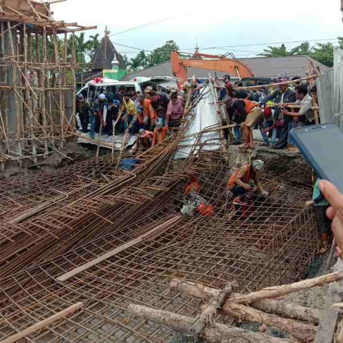 “Karena belum diikat sempurna kemudian tersenggol, sehingga menimbulkan ketidak seimbangan struktur tulangan dan mengakibatkan robohnya susunan tulangan pembesian itu,” ujarnya.