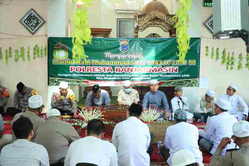 Tetap Disiplin Prokes, Polresta Banjarmasin Peringati Maulid Nabi Muhammad SAW ke 1443 H