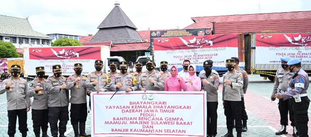 Polda Kalsel, Banjarmasin – Kepolisian Daerah Jawa Timur (Polda Jatim) dan Pengurus Daerah Bhayangkari dan Yayasan Kemala Bhayangkari (YKB) Daerah Jatim mengirimkan bantuan kemanusiaan untuk korban banjir di Kalimantan Selatan (Kalsel).