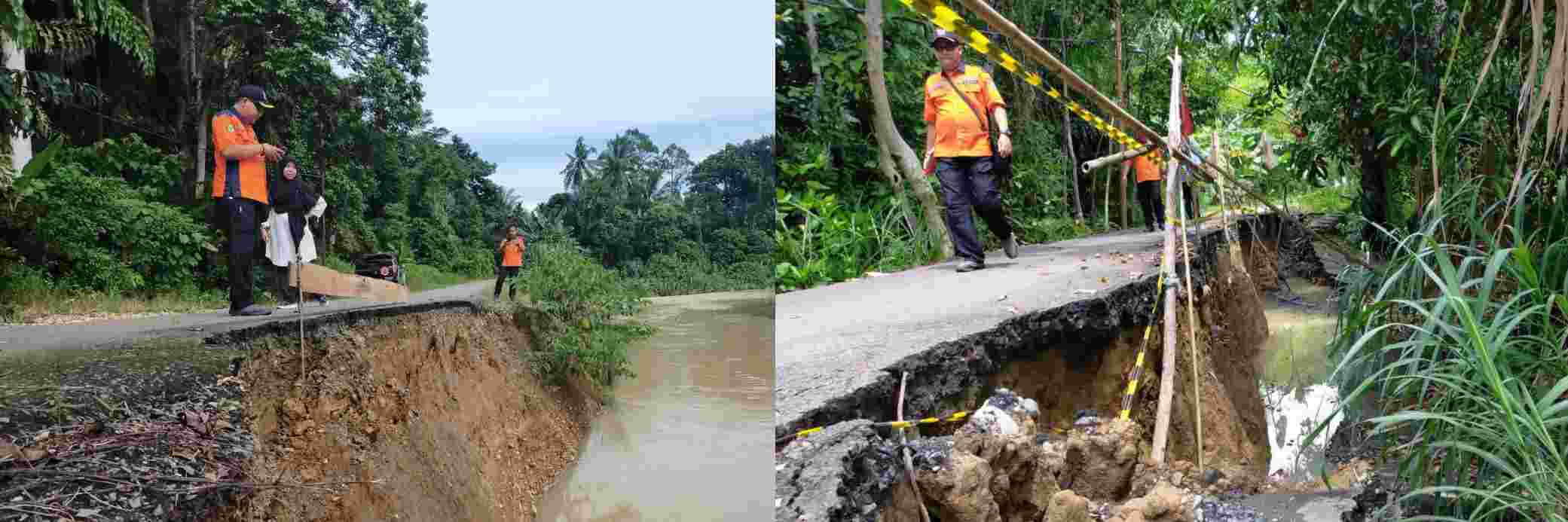 Adapun penyebab utama terjadinya longsoran ini, tambah anggota TRC BPBD ini, adalah gerusan air sungai yang beberapa hari ini debitnya mulai naik akibat curah hujan yang tinggi. Sehingga derasnya arus air sungai inilah yang membuat abrasi tanah dimana jalan tersebut terhampar.