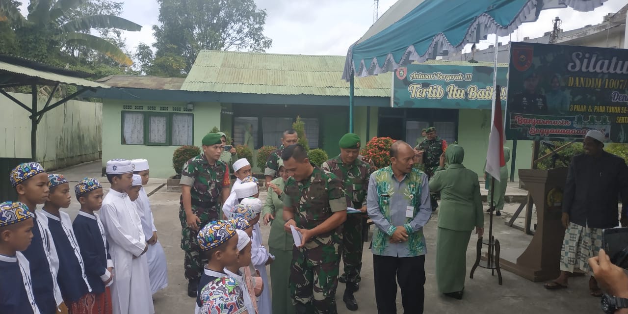 Dalam silahturahmi Dandim disambut Tiga Pilar dan tokoh setempat serta 100 anak yatim piatu, pihak kecamatan dan lurah serta kapolsek setempat.