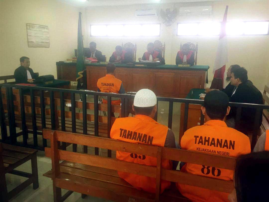 Banjarmasin, BARITO – TIGA terdakwa kasus penyiraman air keras terhadap mantan Kadivpas Kemenkumham Kalsel Asep Syarifuddin jalani sidang perdana , di Pengadilan Negeri (PN) Banjarmasin, Rabu (20/2/2019) siang kemarin.