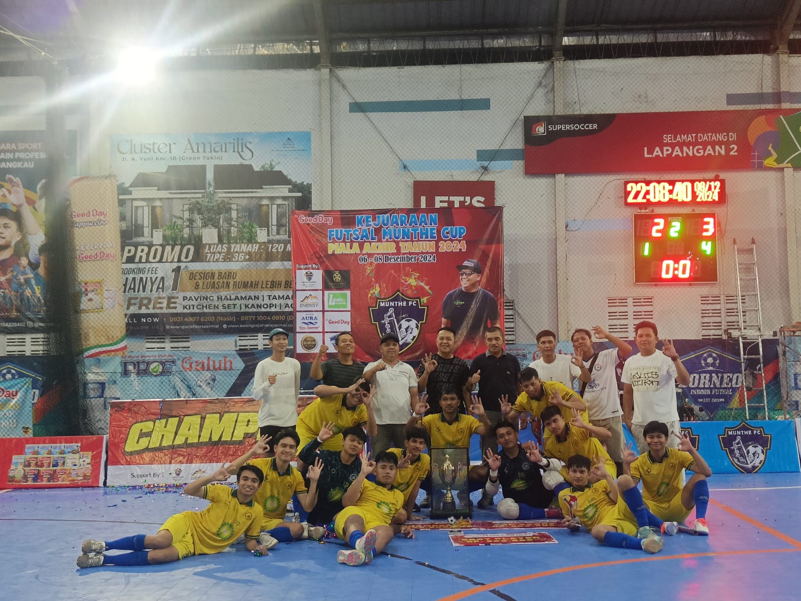 Banjarmasin, BARITOPOST.CO.ID – Tim futsal asal DKI Jakarta, Sulcata FC, sukses memboyong Piala Munthe Futsal Cup 2024. Keberhasilan itu setelah mengalahkan Savu FC (Samarinda) yang berakhir 3-2 dipertandingan final, Minggu (8/12/2024) malam di Borneo Indoor Futsal, Banjarmasin.