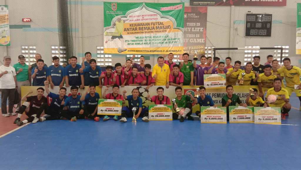 Banjarmasin, BARITO – Tim Darul Abidin Barabai (HST) menjadi kampiun setelah mengalahkan Usman Bin Affan (Batola) dengan skor 5-4 di partai final Kejuaraan Futsal Antar Remaja Masjid se-Kalimantan Selatan (Kalsel) memperebutkan Piala Paman Birin Cup 2019 yang berakhir, Sabtu (26/10) di Borneo Indoor Futsal, Banjarmasin.