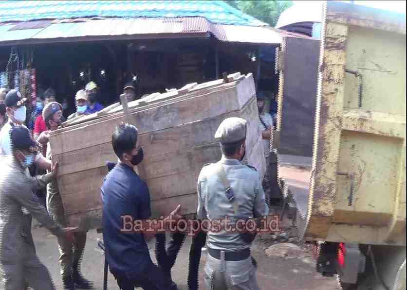 Segenap tim gabungan itu selanjutnya memberangus kepada semua pedagang yang membuka lapak jualannya dibadan jalan dari samping Plaza Bajuin hingga memanjang sampai kelos pasar daging yang terkoneksi dengan Jalan Pintu Air Pelaihari.