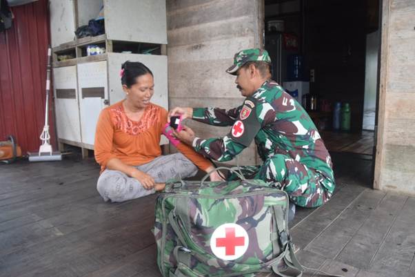 Lebih lanjut Peltu Darung mengatakan, tidak hanya anggota Satgas TMMD termasuk warga juga dilayani untuk periksa kesehatan ataupun berobat. Hal ini dilakukan sebagai bentuk kemanunggalan TNI dengan masyarakat di lokasi TMMD Kampung Sungai Gampa.