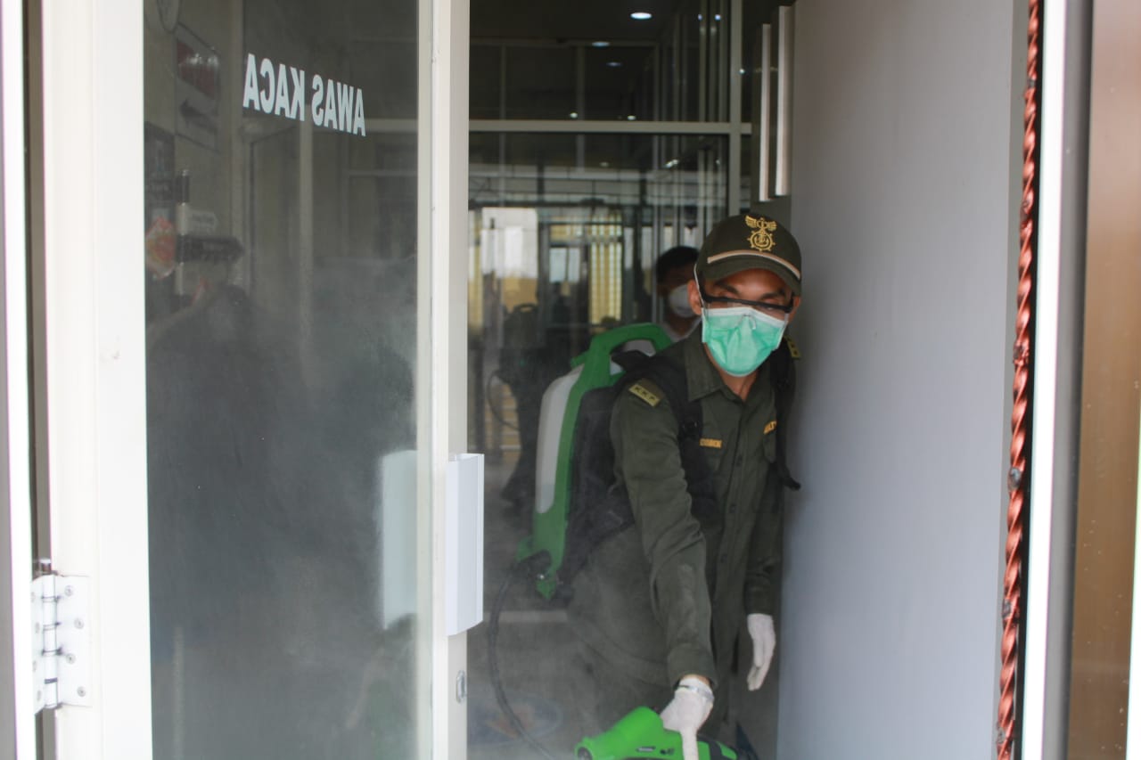Kedatangan tim KKP adalah untuk melakukan penyemprotan cairan disinfektan pada seluruh area publik maupun ruangan dilingkungan Kantor.