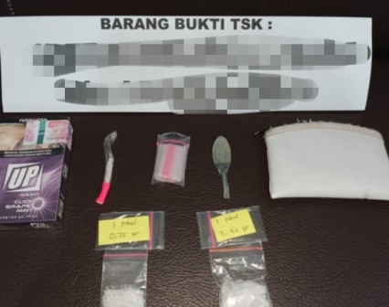 Pada saat dilakukan penggeledahan terhadap tersangka IR petugas berhasil menemukan barang bukti berupa 1 paket besar yang diduga sabu-sabu yang dibungkus dengan plastik klip warna bening dengan berat bruto 3,42 gram, 1 paket yang diduga sabu-sabu yang dibungkus dengan plastik klip warna bening dengan berat bruto 0,75 gram, 1 buah pipet yang terbuat dari kaca warna bening, 1 (satu) pak plastik klip warna bening, 1 buah kotak rokok merk UP warna ungu, 1 buah dompet kecil warna putih, 1 buah sendok kecil warna perak. dan barang bukti yang ditemukan terhadap TSK MT berupa 1 paket yang diduga sabu-sabu yang dibungkus dengan plastik klip warna bening dengan berat bruto 0,43 gram, 1 buah timbangan digital warna silver, 1 buah dompet merk Ferre warna hitam, uang tunai sebesar Rp350.000,- 1 buah handphone merk samsung warna putih. Selanjutnya pelaku dan barang bukti diamankan di Polres HST untuk proses lebih lanjut.