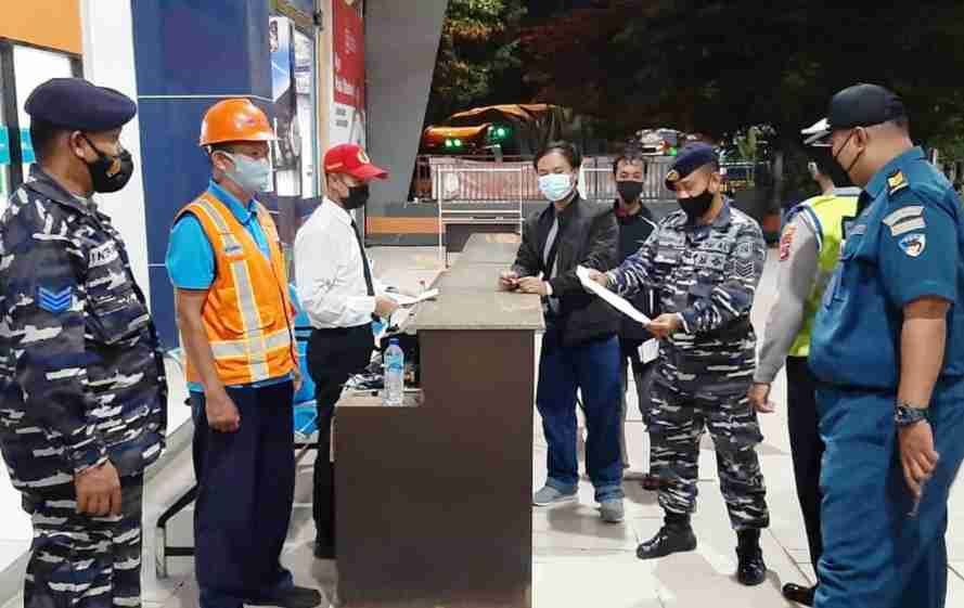 Banjarmasin, BARITO – Tim Terpadu yang merupakan Personel gabungan dari unsur TNI AL, AD, Polri, Kantor Kesehatan Pelabuhan (KKP), Pelindo III Banjarmasin dan Kantor Kesyahbandaran Otoritas Pelabuhan (KSOP) melaksanakan pengendalian transportasi laut, di Pelabuhan Trisakti Banjarmasin, Jum’at (30/7/2021).