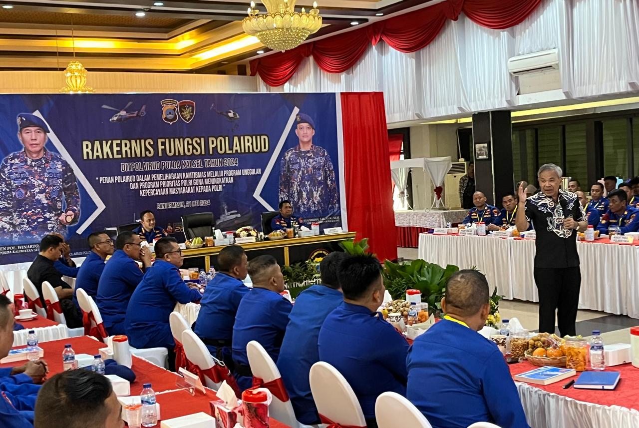 Banjarmasin, BARITOPOST.CO.ID – Direktorat Kepolisian Perairan dan Udara (Ditpolairud) Polda Kalimantan Selatan (Kalsel), menggelar Rapat Kerja Teknis (Rakernis) Fungsi Polairud di Aula Mathilda Mapolda Kalsel, Banjarmasin, Selasa (21/5/2024).