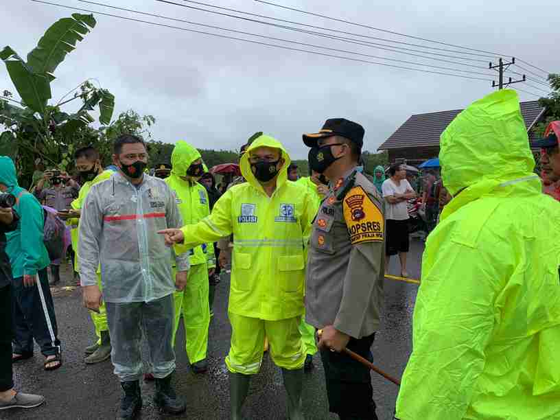 Martapura, BARITO – Jembatan yang putus di Jalan Akhmad Yani Km 55 Matraman-Astambul Kabupaten Banjar akibat banjir hingga putus, ditinjau langsung Direktur lalu lintas Polda Kalsel Kombes Pol Maesa Soegriwo, Kamis (14/1/2021) pagi.