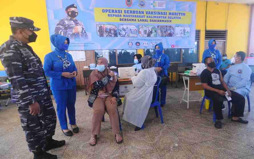 Danlanal Banjarmasin Kolonel Laut (P) Herbiyantoko M.Tr. Hanla didampingi ketua penyelenggara Mayor Laut (K/W) dr. Meutia Indrasakti dan Perwira Pelaksana Mayor Laut (PM) Catur Dono, disela meninjau pelaksanaan vaksin mengatakan, kegiatan Operasi Serbuan Vaksinasi Maritim ini sesuai instruksi langsung dari Kepala Staf Angkatan Laut (KASAL) Laksamana TNI Yudo Margono, SE MM