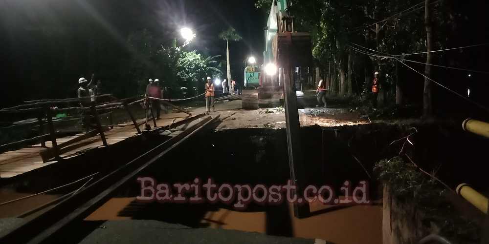 Pelaihari,BARITO – Pasca putusnya jembatan di wilayah Kelurahan Pabahanan sebagai jembatan penghubung jalan nasioanal akibat terjangan banjir, TNI dan Balai Pelaksanaan Jalan Nasional (BPJN) Kalsel langsung respon cepat memasang jembatan jenis Bailey. Jembatan Balley merupakan jembatan yang kerap digunakan dalam hal militer dan mampu menahan beban 40 ton.