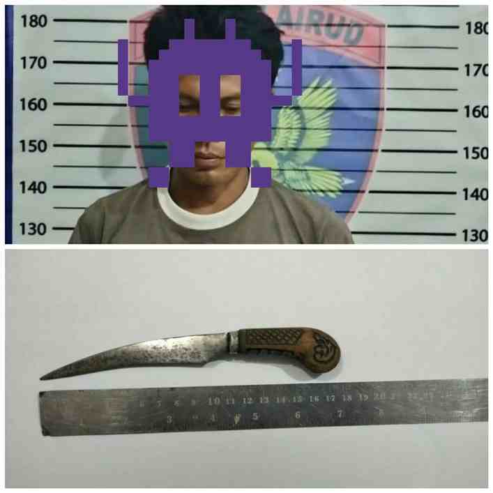 (38) kemudian dibekuk tim gabungan tak sampai 24 jam di rumahnya tidak jauh dari TKP. Buruh itu ditangkap, hingga barang bukti sajam jenis pisau Belati turut disita.