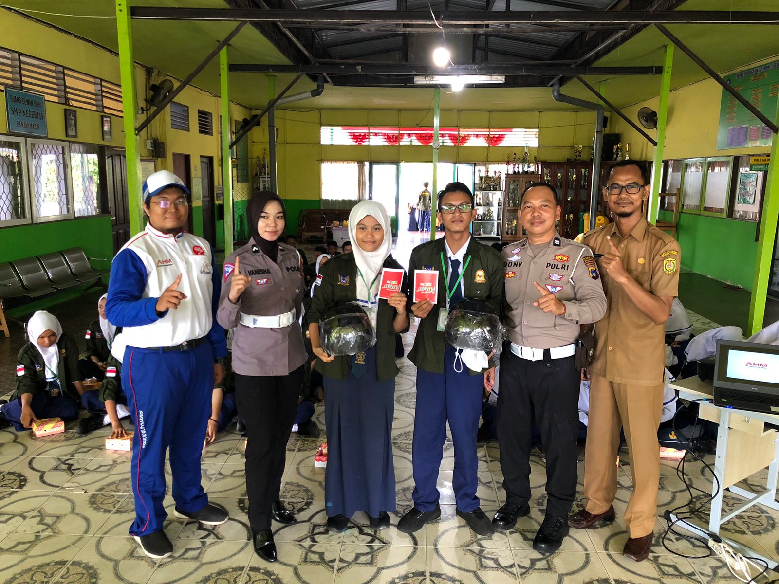 Puluhan siswa SMPN 15 Banjarmasin hadir, dan menyambut tim Safety Riding Trio Motor dengan antusias, mengingat tim selalu menyiapkan hadiah menarik untuk para peserta.