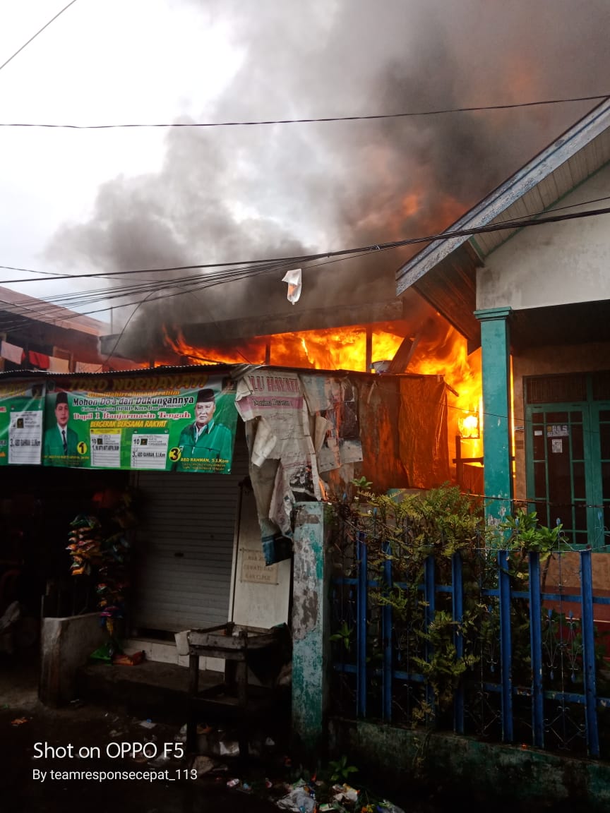 Pedagang pun berhamburan menyelamatkan barang dagangannya jelang senja itu, hingga mengundang pulhan pemadam kebakaran (PMK) untuk mengeroyok api tersebut. Akibat kebakaran itu sebanyak tujuh rumah atau bedakan terbakar.