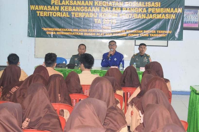 Kegiatan sosialisasi wasbang itu dibuka Kasdim 1007/Bjm Mayor Inf Maserani yang mengatakan, tujuan kegiatan ini dilaksanakan adalah dalam rangka menumbuhkan rasa kecintaan generasi muda terhadap Negara Kesatuan Republik Indonesia (NKRI).  Dengan   meningkatkan pengetahuan tentang wawasan kebangsaan, maka tumbuh nasionalisme,”ingatnya.