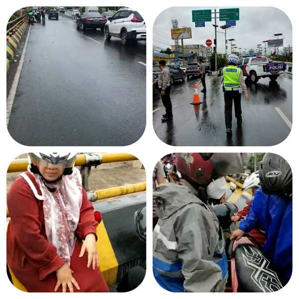 Dalam video berdurasi 16 detik yang dikirim nampak pengendara terjatuh bersama penumpang atau yang diboncengnya. Terutama menuju arah ke dalam kota, itu juga ditolong pengendara lainnya kemungkinan dari relawan.