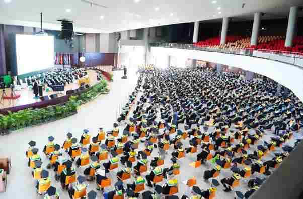 “Kita harapkan dari gelaran ini menjadi satu indikator jika pandemic Covid 19 sudah melanda dan kita juga sudah bisa beraktivitas kembali dan perekonomian pun sudah kembali berjalan dan menggerakkan perekonomian masyarakat,” ujarnya saat menyampaikan pidato sambutan di hadapan wisudawan yang tetap diwajibkan meneraplan prokes itu.