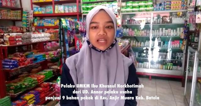 “Kalau sudah izin dipermudah, modal jadi bisa diperbanyak dan bisa membuka usaha baru lagi,” kata Ibu Khusnul Norkhotimah dari UD. Annor pelaku usaha penjual bahan pokok di Kec. Anjir Muara Kab. Batola.