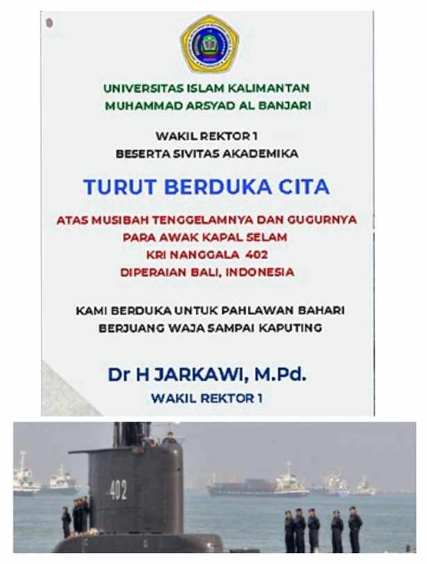 Mengucapkan Turut Berduka atas tenggelam dan gugurnya awak Kapal Selam KRI Nanggala 402 di Perairan Bali, Indonesia.