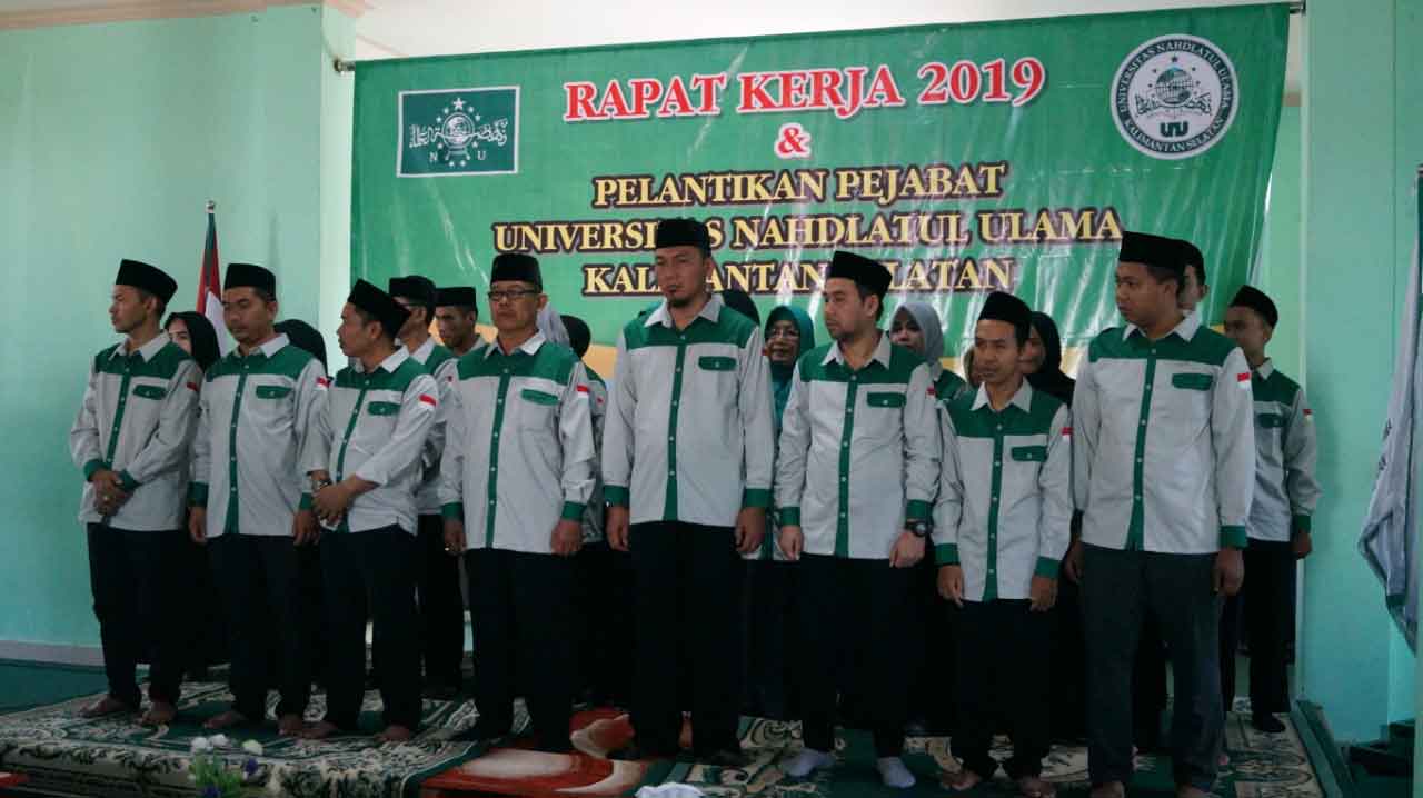 Martapura, BARITO – Rektor Universitas Nahdlatul Ulama Kalimantan Selatan, Gerilyansyah Basrindu, melantik 37 pejabat baru untuk mengisi posisi di lingkungan universitas setempat. Pelantikan bertempat di Aula Gedung Dakwah, Universitas NU Kalsel, Selasa kemarin yang dibarengi Rapat Kerja (Raker) tahun akademik 2019/2020.