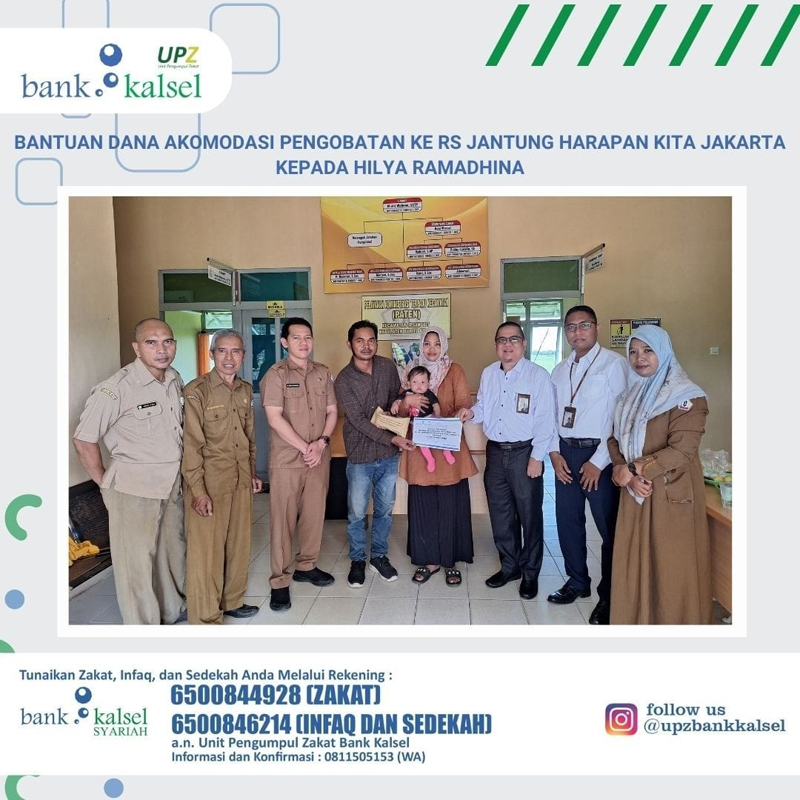Berdasarkan hal tersebut UPZ Bank Kalsel memberikan bantuan dana akomodasi pengobatan jantung bocor di RS. Jantung Harapan Kita Jakarta kepada Hilya Ramadhina.