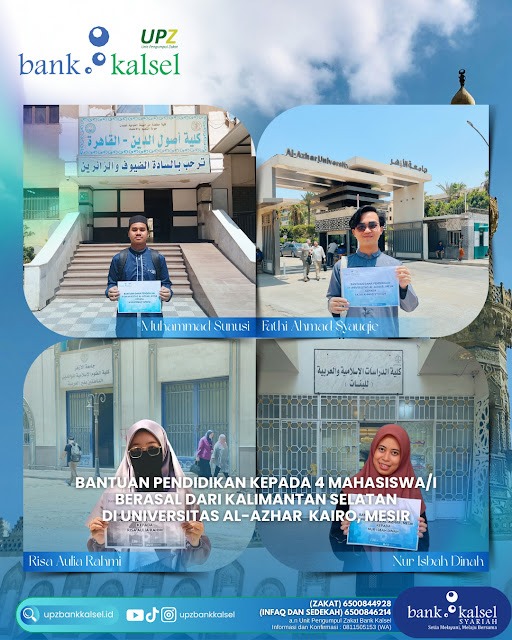 Banjarmasin, BARITOPOST.CO.ID – UPZ Bank Kalsel dalam mendukung pendidikan kembali diwujudkan melalui penyaluran bantuan kepada empat mahasiswa asal Kalimantan Selatan dari keluarga kurang mampu, yaitu Muhammad Sunusi, Fathi Ahmad Syauqie, Risa Aulia Rahmi, dan Nur Isbah Dinah.