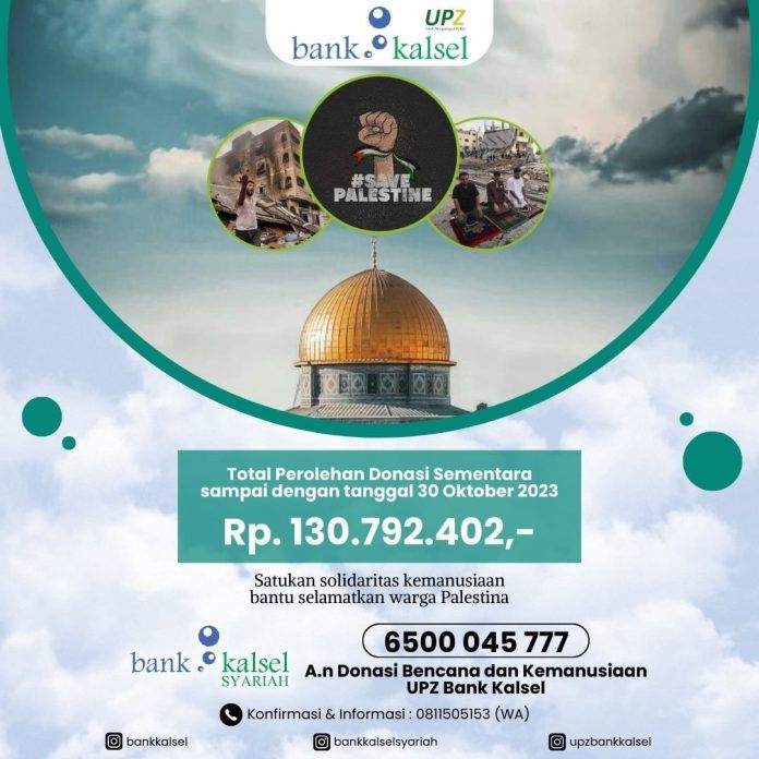 Bantuan Solidaritas Kemanusiaan untuk menyelamatkan warga Palestina ini terus dikumpulkan UPZ Bank Kalsel hingga batas waktu yang tidak ditentukan.
