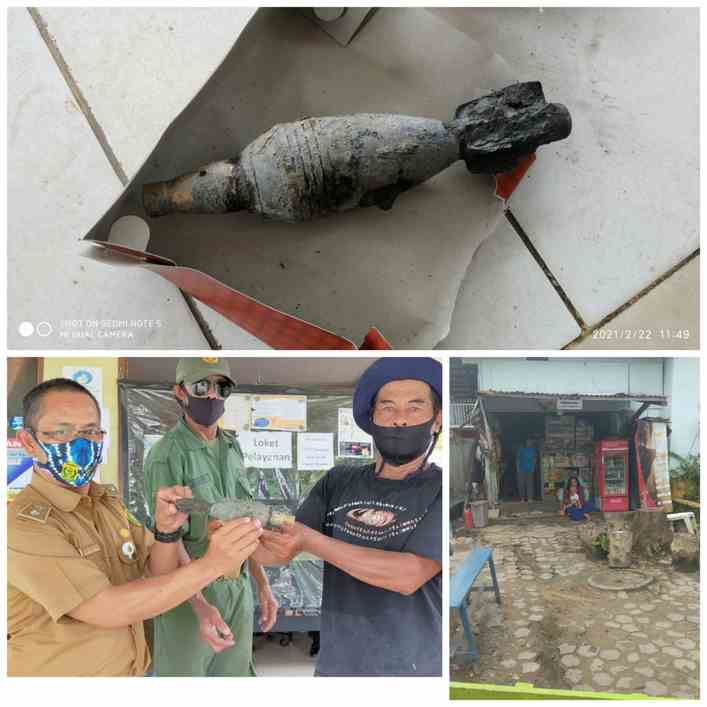 Banjarmasin,  BARITO – Temuan Mortir kecil di halaman Muhadi selaku Ketua RT 13 di Jalan Rajawali  atau Bumi Lingkar Basirih menggegerkan pemukiman sekitar di Kelurahan Basirih Selatan Banjarmasin Selatan,  Senin (22/2/2021) pagi pukul 11.30 Wita.