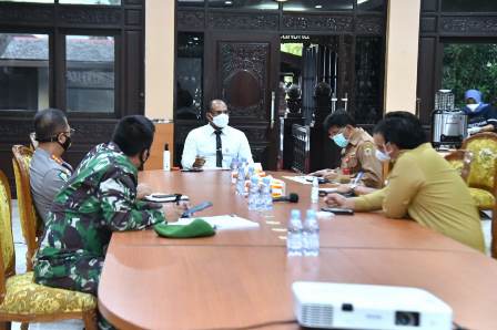Penjabat Gubernur Kalimantan Selatan Safrizal ZA memimpin langsung rapat koordinasi persiapan vaksin massal bersama unsur kepolisian ,TNI, Satgas Covid-19, perwakilan Majelis Ulama Indonesia (MUI) Kalsel, ketua organisasi kemasyarakat/keagamaan, organisasi wartawan, dan lain-lain, Senin (1/3).