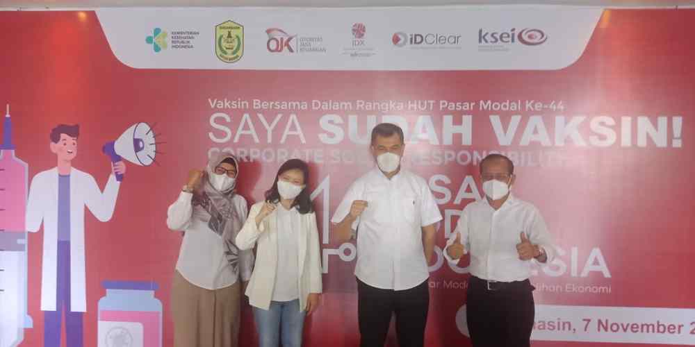 Ia memastikan Pasar Modal terus membantu pemerintah dalam percepatan Vaksin Covid-19 bersama OJK, Self Regulatory Organization (SRO) Pasar Modal BEI, KPEI dan KSEI bertajuk “ Vaksinasi Industri Jasa Keuangan”.