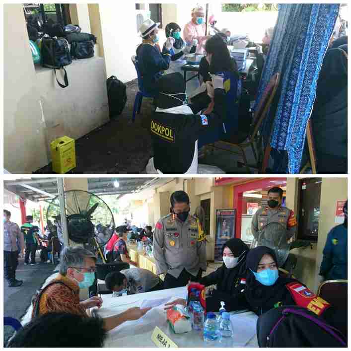 RS Bhayangkara dan dibantu Nakes RS Sari Mulia. Agar vaksinasi dapat dilaksanakan dengan lancar dan tidak menumpuk alias kerumunan.