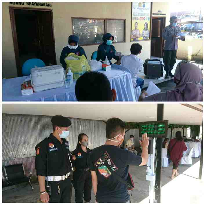 Banjarmasin, BARITO – Vaksinasi kedua di Polsek Banjarmasin Barat kembali digelar pihak Bidang Dokkes Polda Kalsel, Kamis (27/5/2021) pagi. Warga pun berdatangan silih berganti sekitar 30 menunggu disuntik vaksin Sinovac agar kuat imun tubuh dari wabah virus Corona.