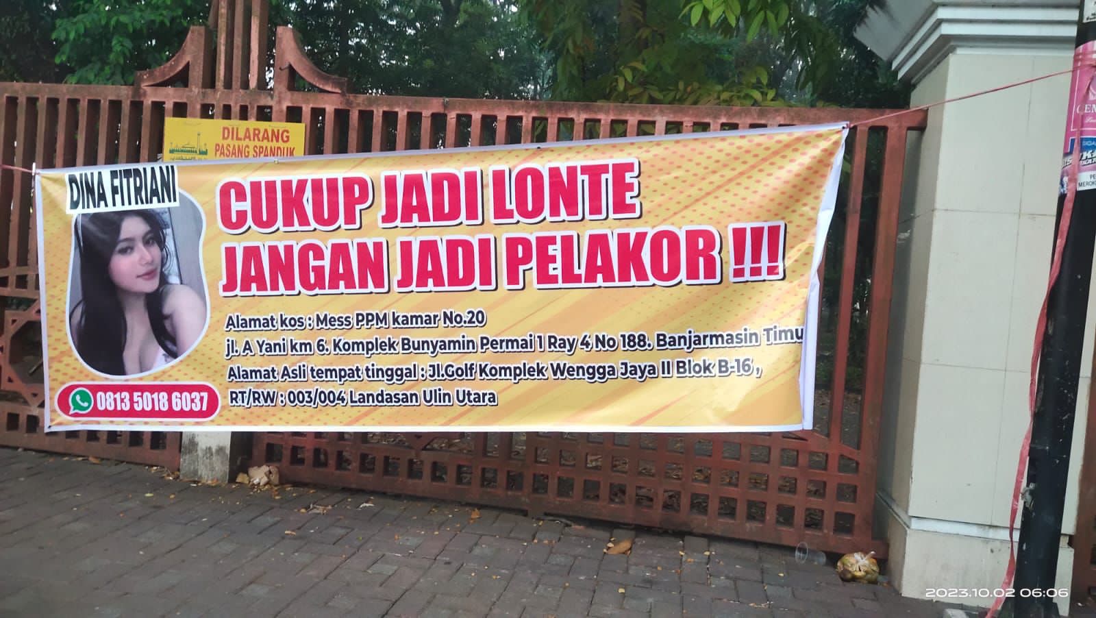 Banjarmasin, BARITOPOST.CO.ID – Pengguna jalan yang melintas Masjid Raya Sabilal Muhtadin Banjarmasin, dihebohkan dihebohkan dengan terpasangnya sebuah Spanduk bertuliskan “Cukup jadi Lonte, Jangan jadi Pelakor” di pagar masjid terbesar di Kalimantan Selatan , Rabu (4/10/2023).