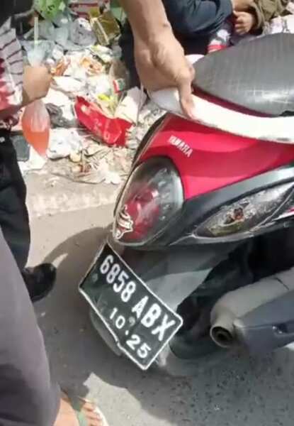 Kemudian wanita di video itu bertanya lagi pakai motornapa pelaku melakukan aksinya. Lalu dijawab warga pakai Homda Scoopy. Nampak sepeda motor korban jenis Yamaha Fino warna merah putih di parkir di tepi Jalan dekat sampah.