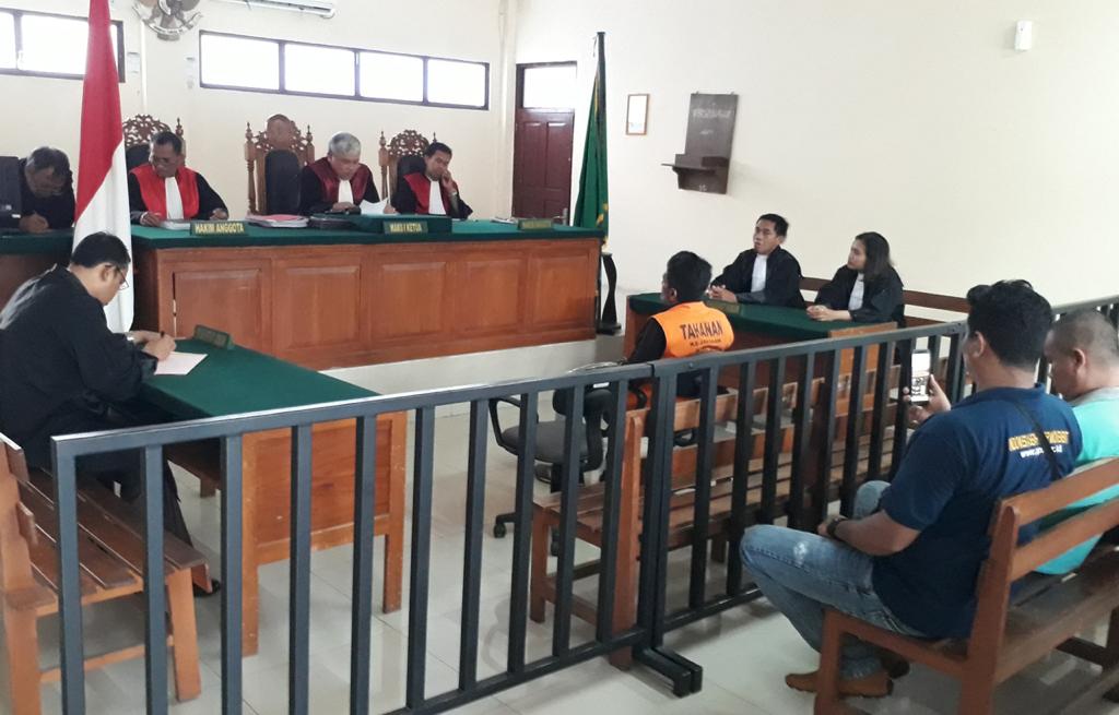 Banjarmasin, BARITO – Irianto Said (41) hanya bisa tertunduk lesu saat majelis hakim pimpinan Afandi Widarijanto SH menjatuhkan vonis 1 tahun penjara pada persidangan di Pengadilan Negeri (PN) Banjarmasin, Senin (2/12/2019) sore.