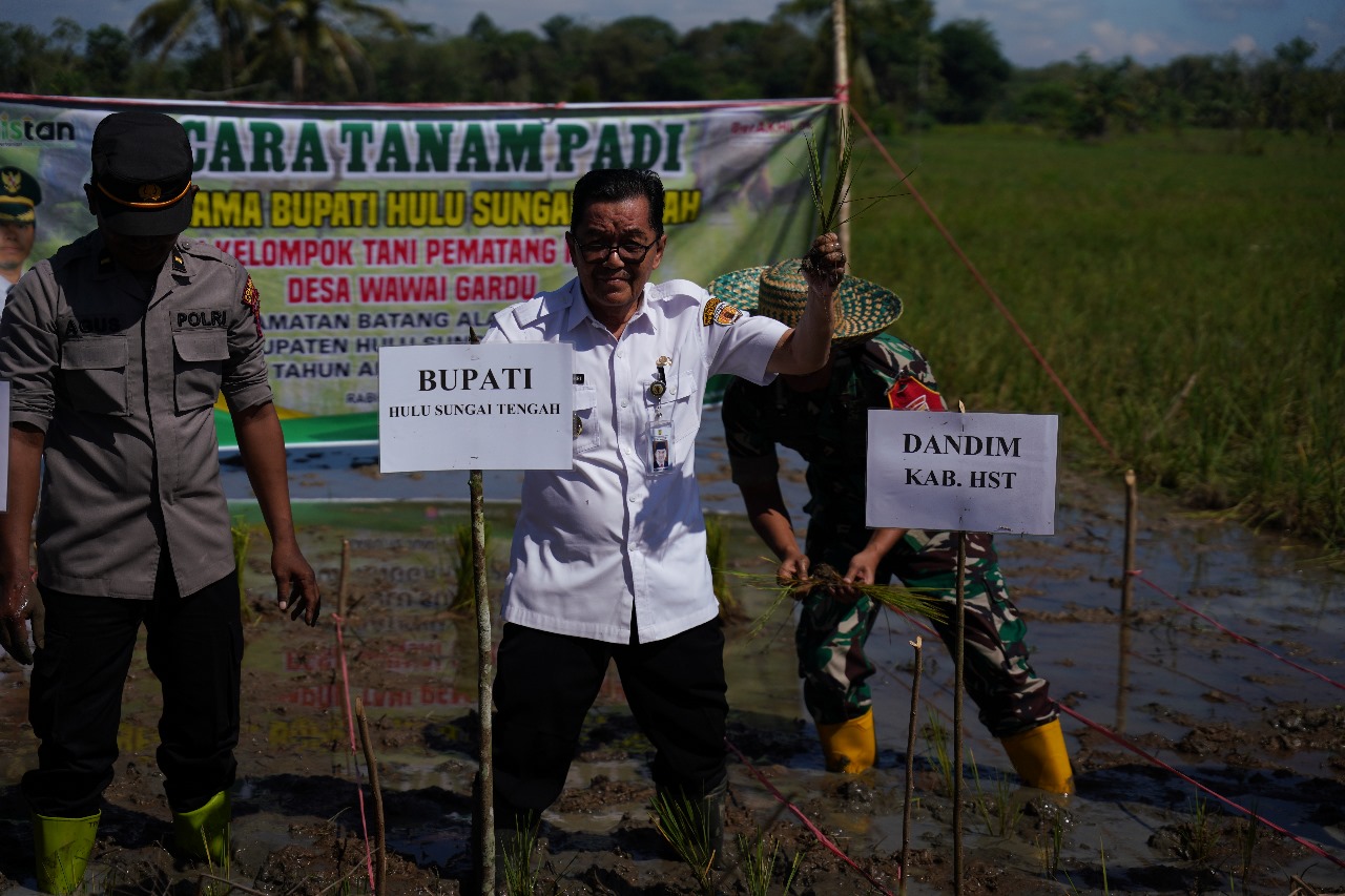 Dalam sambutannya Wakil Bupati HST H Masyah Sabri menyampaikan atas nama pemerintah Kab HST memberikan apresiasi atas terlaksana penanaman padi hari ini.