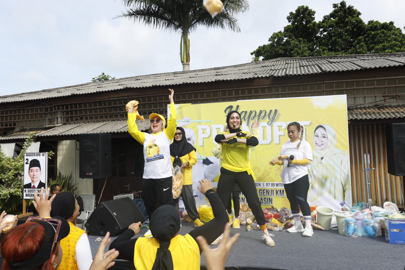 Mereka tampak antusias mengikuti Kegiatan Happy Poundfit bersama Pro Ayu Sastra dan Calon Anggota Legislatif (Caleg) Dewan Perwakilan Rakyat Daerah (DPRD) Provinsi Kalimantan Selatan (Kalsel) Dapil Kota Banjarmasin dari Partai Golkar nomor urut 2 Hj Dewi Damayanti Said.