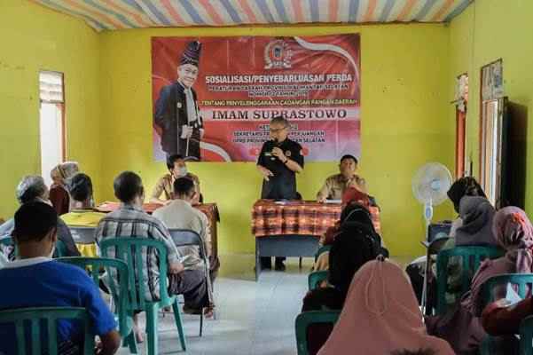 Pelaihari, BARITO – Ketua Komisi II DPRD Provinsi Kalimantan Selatan Imam Suprastowo menyelenggarakan kegiatan Sosialisasi Peraturan Daerah (Perda) Kalsel Nomor 12 Tahun 2019 tentang Penyelenggaraan Cadangan Pangan bertempat di Kelurahan Karang Taruna Kabupaten Tanah Laut, Senin (4/4/2022).